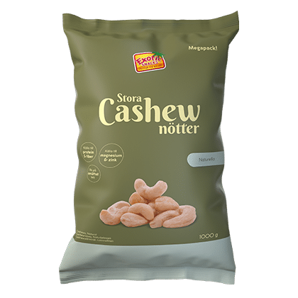 Våra naturella cashewnötter är mjukt knapriga med en mild och naturlig smak. Njut i mat och bakverk, som snacks eller som en energiboost!
