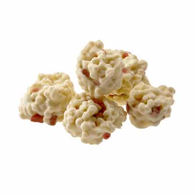 Vit choklad (74%) (socker, kakaosmör*, helmjölkspulver, vasslepulver (mjölk), emulgeringsmedel (sojalecitin), naturlig vaniljarom), fruktbitar med jordgubb (15%) (socker, fruktossirap, jordgubbsjuice från koncentrat, jordgubbspuré, äppelpuré, rismjöl, körsbärsjuice från koncentrat, kakaosmör*, geleringsmedel (pektin), surhetsreglerande medel (citronsyra), naturlig arom), riskrisp (10%) (rismjöl, vetemalt, färgämne (sockerkulör)), yoghurtpulver, yoghurtarom. *Rainforest Alliance Certified. Find out more at ra.org.
