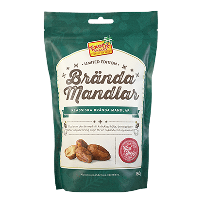 En klassisk bränd mandel som passar perfekt till julmyset. God som den är med sitt knäckiga hölje och ännu bättre efter att ha blivit värmd i ugnen en stund för att få en ”nykanderad” känsla.