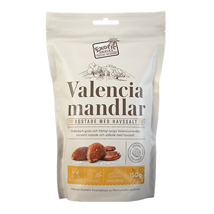 Underbart goda och härligt lyxiga Valenciamandlar, varsamt rostade och saltade med havssalt.